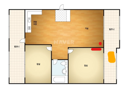 실외기거치대는 베란다에 있습니다.
